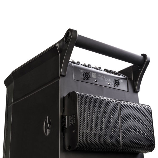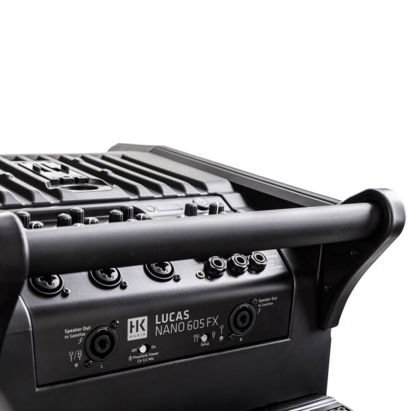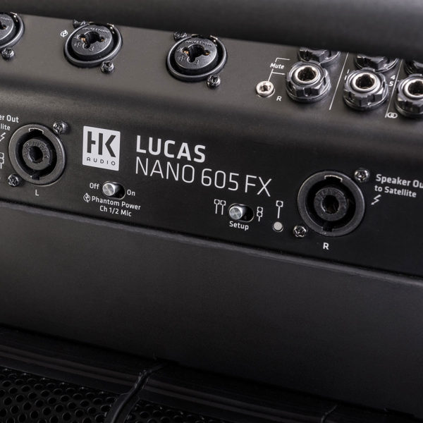 HK LUCAS Nano 605FX – mobilny system nagłośnieniowy. LUCAS NANO to jedyny prawdziwy stereofoniczny system nagłośnieniowy, który można nosić w jednej ręce. Dzięki pięciu wejściom, strumieniowemu przesyłaniu dźwięku przez Bluetooth i wbudowanym efektom pogłosu, 605 FX jest prawdziwie wszechstronnym urządzeniem, niezależnie od tego, czy jest stosowany jako frontowy system nagłaśniający Twój zespół dla publiczności do 120 osób czy rodzinne spotkanie przy grillu.
