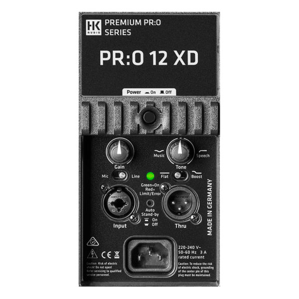 Ta prawdziwie wielofunkcyjna paczka sprawdzi się równie znakomicie jako satelita, kompaktowa kolumna szerokopasmowa 12″/1″, jak i jako poziomy monitor sceniczny. Jej wyrównane pasmo przenoszenia jest odporne na sprzężenia zwrotne, a regulacja Music/Speech pozwala na dostosowanie brzmienia do danej sytuacji. Zintegrowany układ wzmacniacza oparty na procesorze DSP zapewnia 1200 W mocy. Wszystko to czyni PR:O 12 XD wyjątkowo wszechstronnym narzędziem nagłośnieniowym.